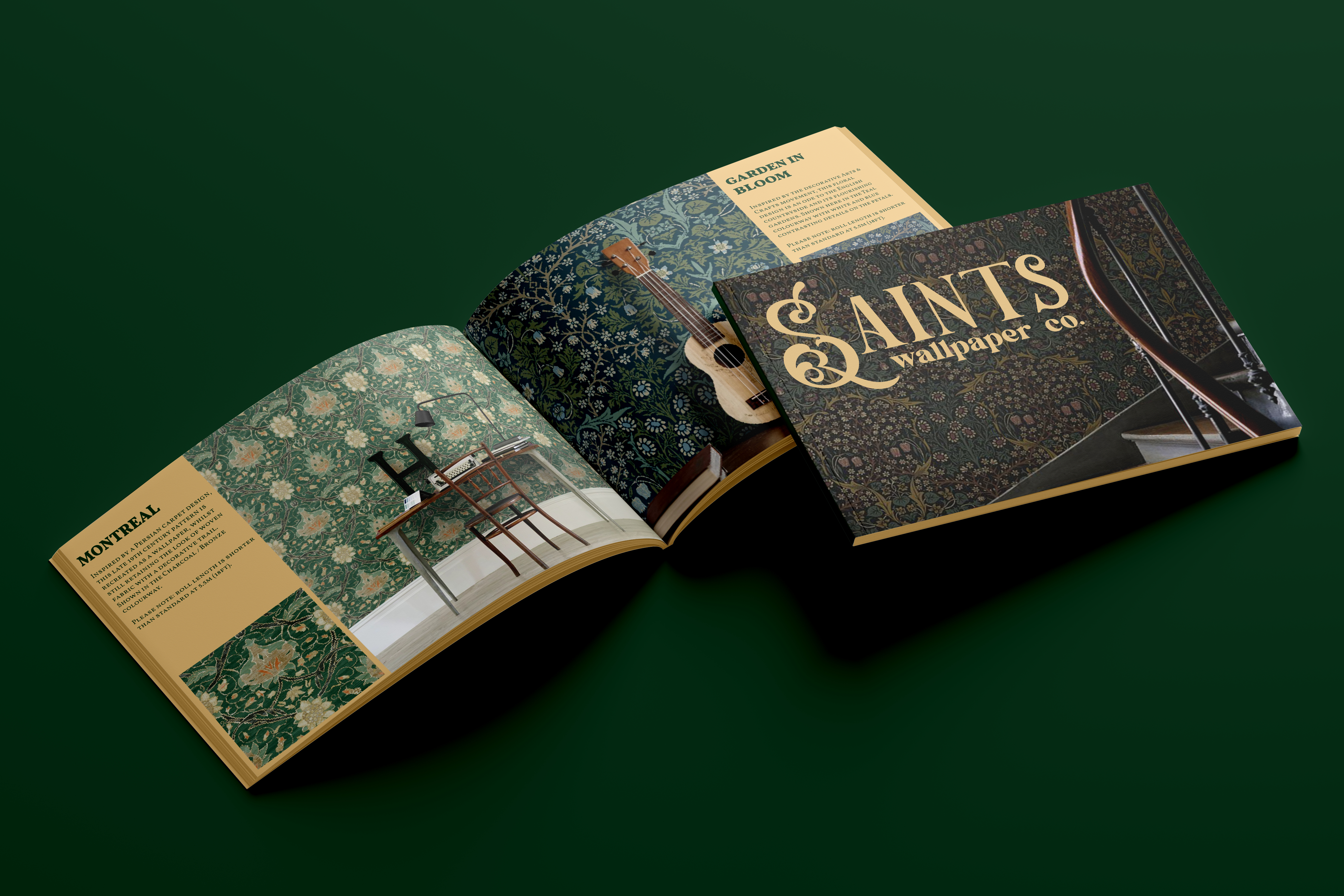 “Saints” is a Victorian style wallpaper brand that require a logo and store sign design, plus any extras.